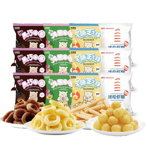 比客熊 网红芝士球虾条巧克力圈洋葱圈小包装办公室小零食食品