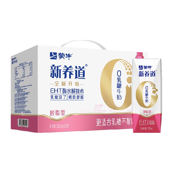 蒙牛新养道0乳糖脱脂型牛奶营养舒服好吸收(新老包装随机发货)
